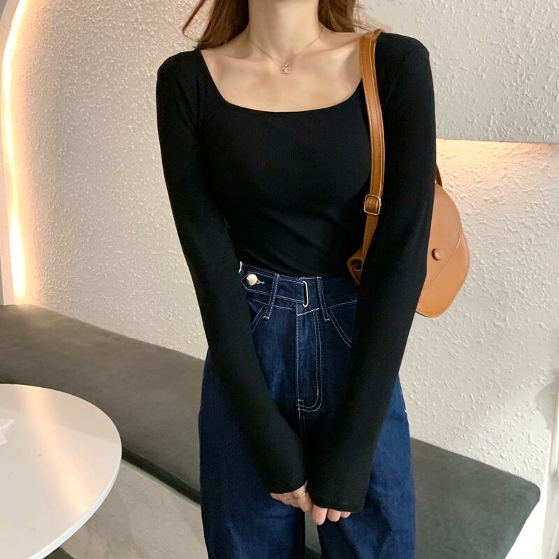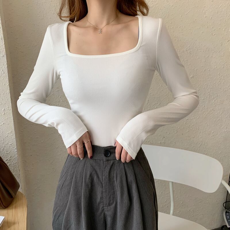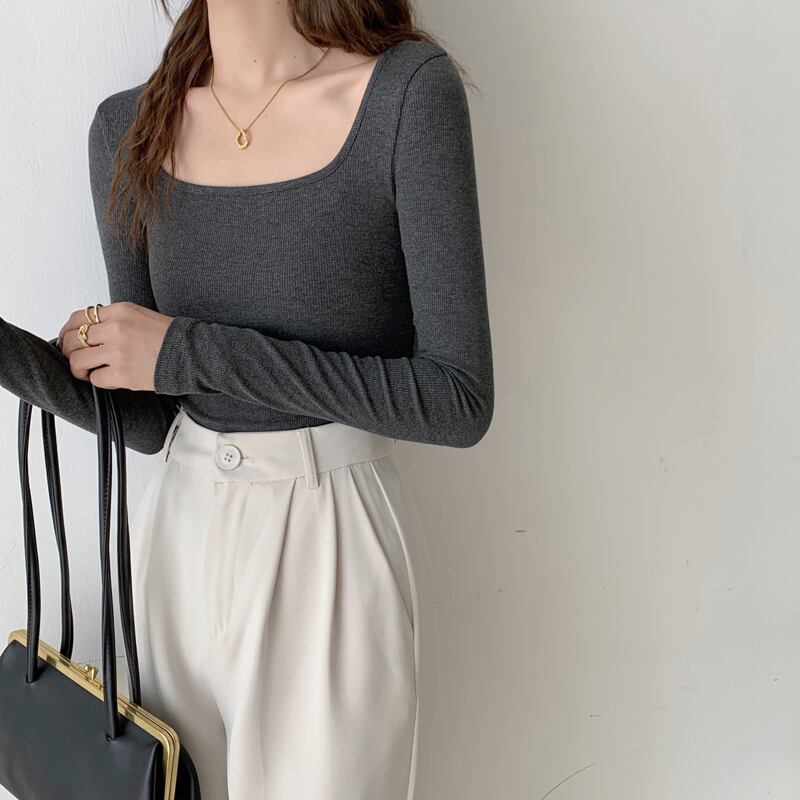 トップス カットソー 袖あり 長袖 スクエアネック 襟なし 細身 伸縮性 ボトミング 薄手 かわいい 大人可愛い きれいめ シンプル カジュアル 大人 上品 おしゃれ かっこいい エキゾチック 大人可愛い 大人女子 こなれ感 ラフ マニッシュ ボーイッシュ 無地 春 秋 10代 20代 30代 レディース 女性用 お出かけ 休日 レストラン ショッピング 着回し 普段使い コーデ モテ 体系カバー プレゼント ギフト トレンド インスタ映え サイズ S M L XL ブラック グレー ホワイト