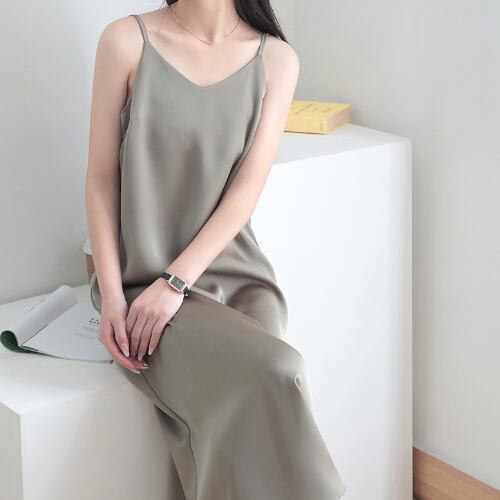 ワンピース キャミソール ロング ロング丈 袖なし ノースリーブ Vネック 襟なし セミフレア ストレート きれいめ シンプル カジュアル 大人 上品 おしゃれ お洒落 大人カジュアル こなれ感 ラフ モード系 セクシー エレガント とろみ感 抜け感 無地 柄 春 夏 20代 30代 40代 レディース 女性用 ママ マタニティ デート お出かけ 公園デビュー 休日 旅行 着回し 普段使い 重ね着 楽ちん サイズ S M L XL 色展開 黒 ブラック グレー カーキ イエロー ニュアンスカラー
