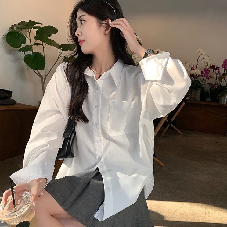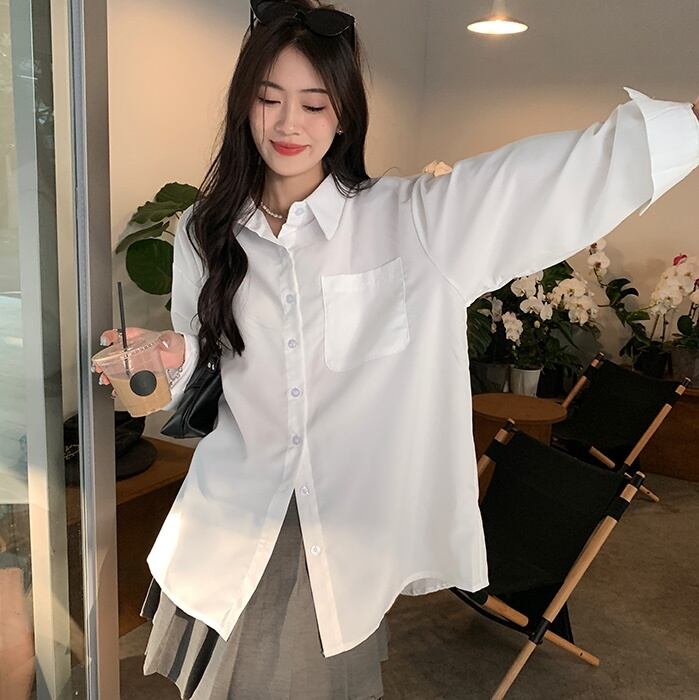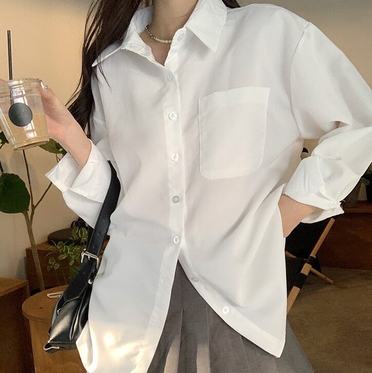 トップス シャツ 袖あり 長袖 Vネック 襟付き 前開き 薄手 シンプル カジュアル 上品 おしゃれ お洒落 かっこいい こなれ感 メンズライク マニッシュ クール フォーマル 無地 春 秋 10代 20代 30代 40代 50代 60代 レディース 女性用 オフィス ビジネス OL 通勤 お出かけ 休日 イベント リクルート 就活 ホテル 着回し 普段使い 重ね着 お揃い ファッション コーデ 楽ちん 定番 サイズ フリーサイズ ワンサイズ 色展開 白 ホワイト 青 ブルー カラバリ