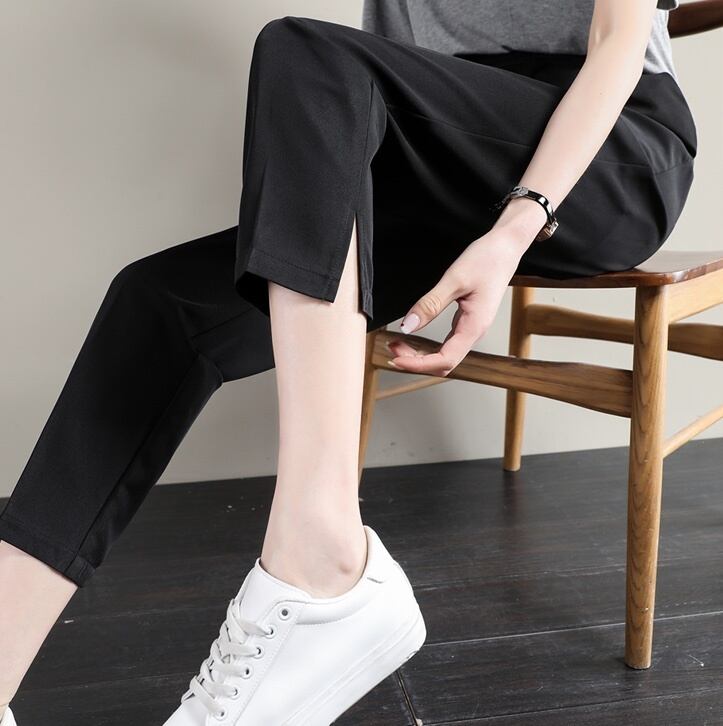サイドスリットとアンクル丈でメンズライクなスタイルに。