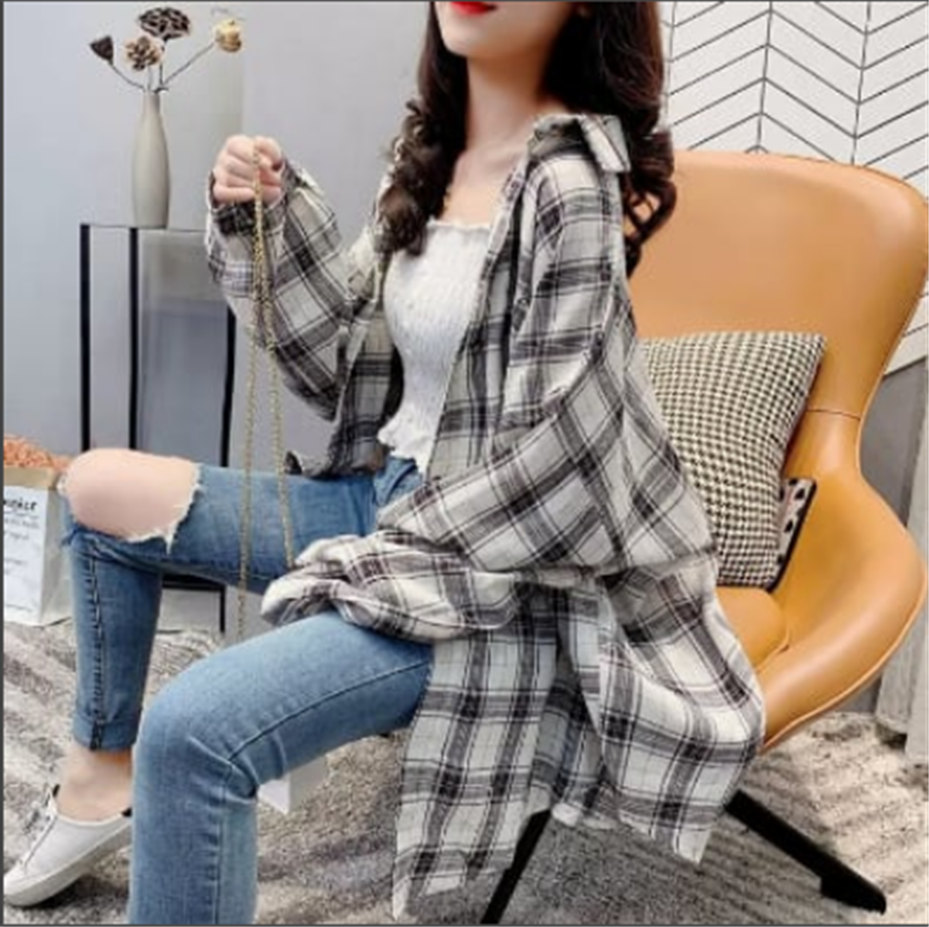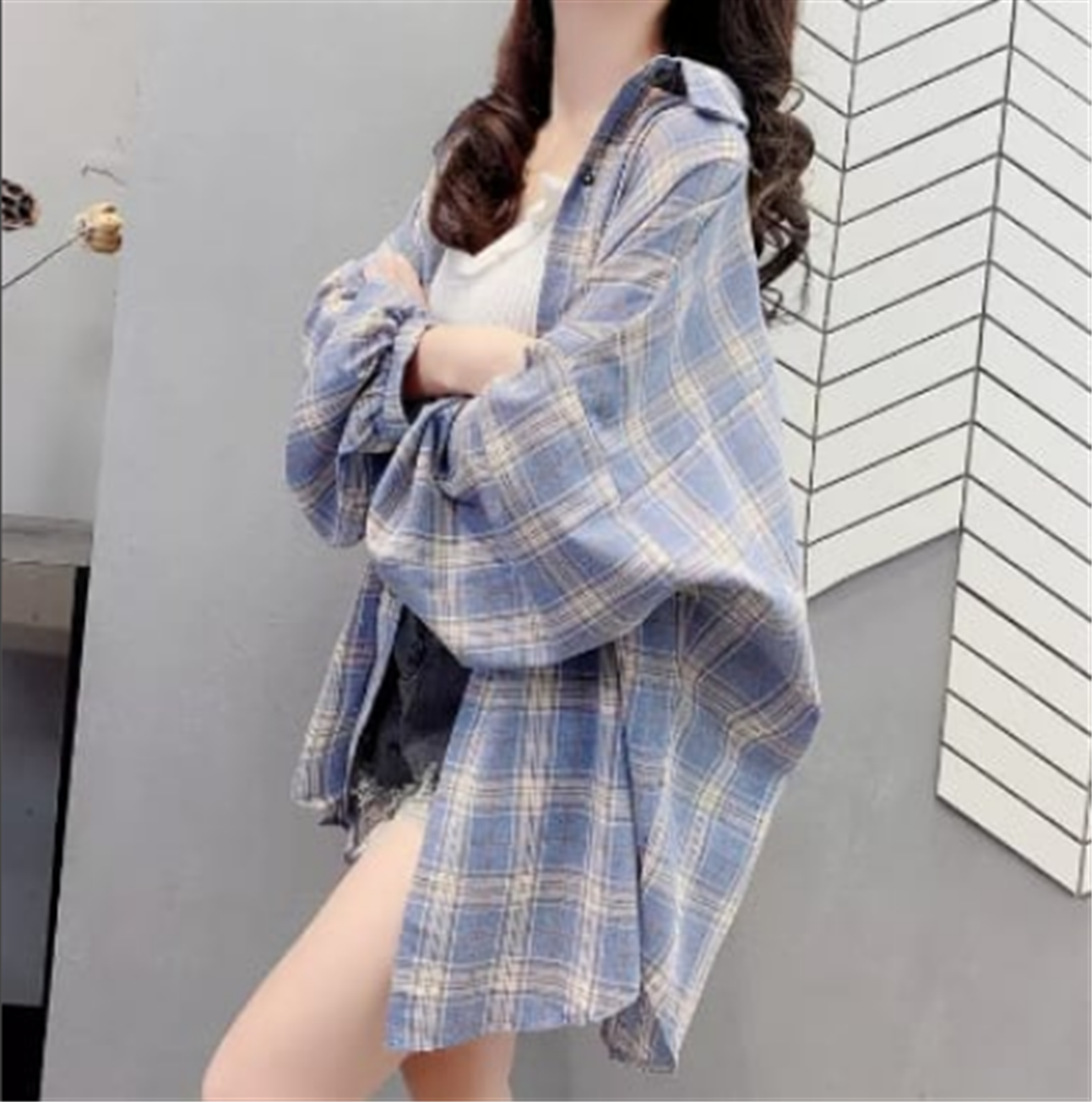 ゆるっとオーバーサイズが可愛い長袖チェックシャツです。