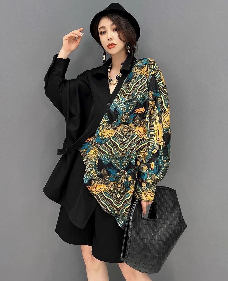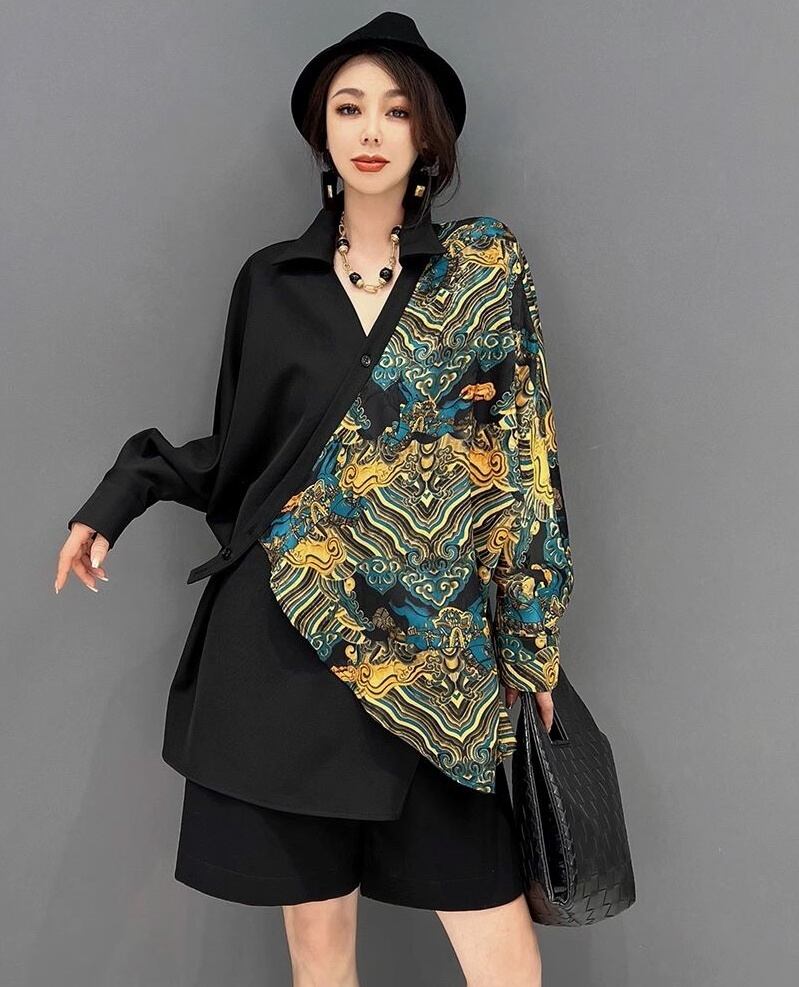 トップス シャツ デザインシャツ 甚平風 ロング丈 袖あり 長袖 襟付き ポロ襟 ワイド アシンメトリー 前開き 大人可愛い きれいめ シンプル カジュアル 大人 上品 お洒落 かっこいい 大人女子 こなれ感 ラフ マニッシュ 個性的 主役級 存在感 抜け感 無地 柄 春 秋 冬 20代 30代 40代 ママ 学生 通学 デート お出かけ 女子会 休日 旅行 着回し 普段使い 重ね着 コーデ 楽ちん 体系カバー 定番 トレンド 流行 インスタ映え S M L ゆったり ブラック