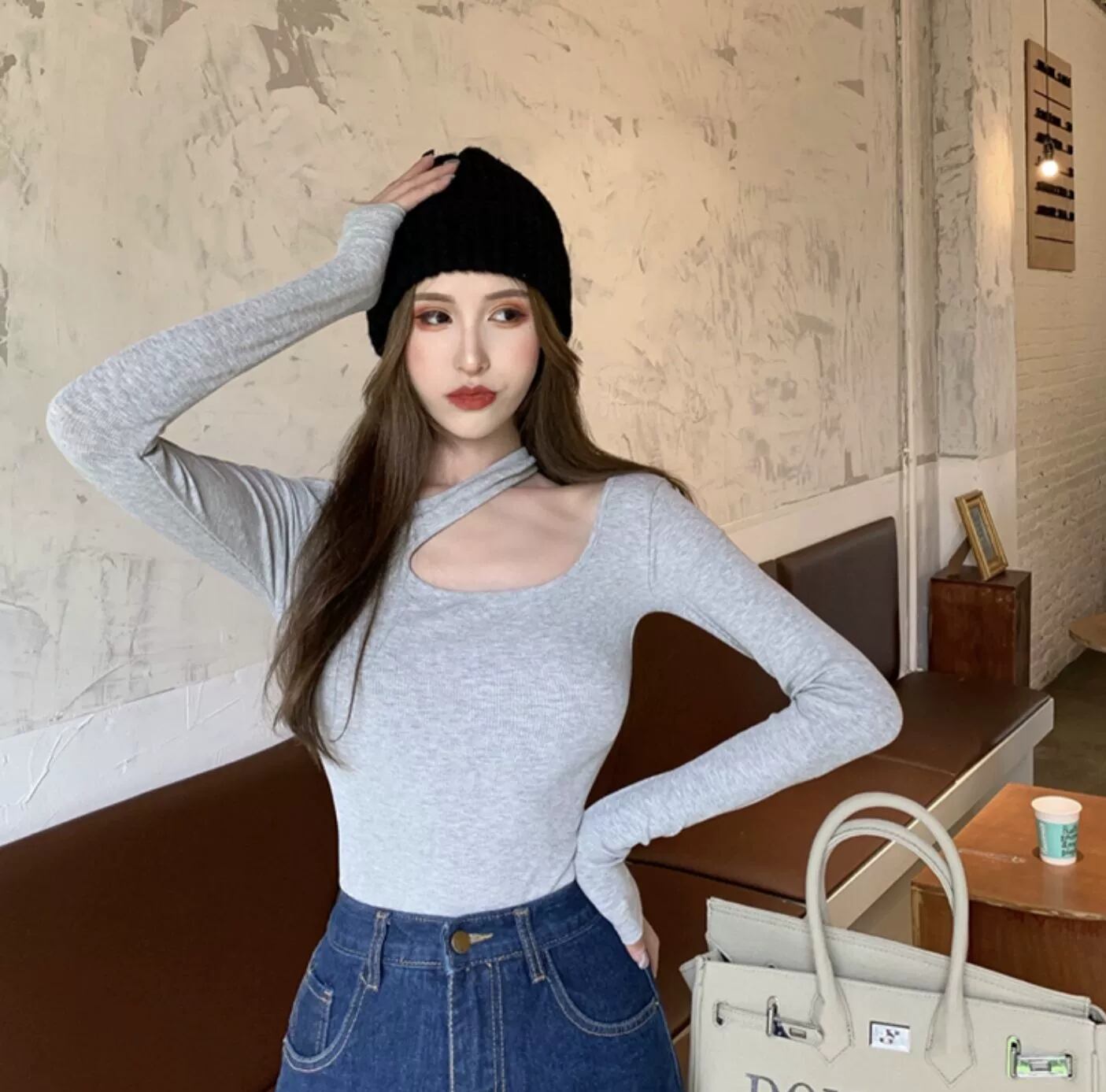 トップス カットソー レギュラー丈 袖あり 長袖 Uネック ホルターネック スリム タイト 細身 ストレート かわいい 大人可愛い シンプル カジュアル おしゃれ お洒落 かっこいい 大人女子 こなれ感 マニッシュ スポーティー クール モード系 セクシー 存在感 無地 春 夏 秋 20代 30代 レディース 学生 通学 デート お出かけ 女子会 お泊まり 休日 アウトドア イベント 旅行 着回し 普段使い ファッション コーデ スタイル サイズ ワンサイズ 色展開 ブラック ホワイト グレー