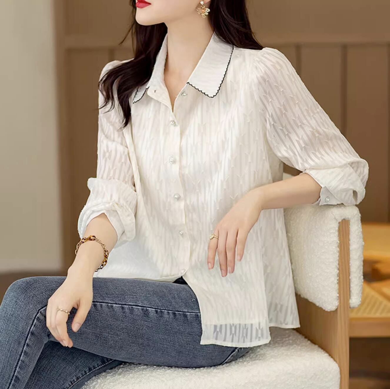 甘くなりすぎない、上品な大人女子にぴったりのエレガントなシフォンブラウス。