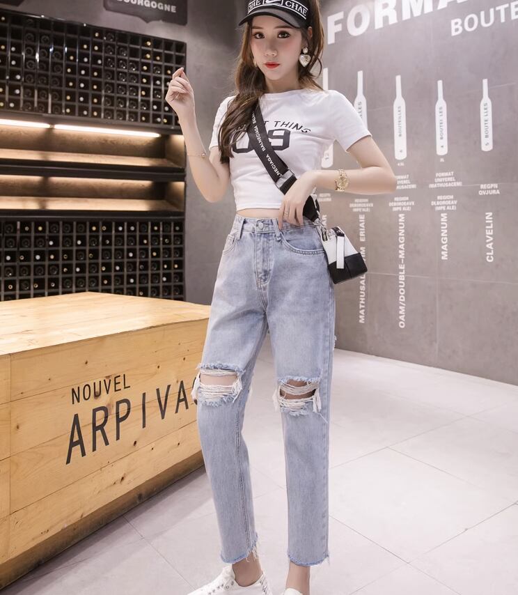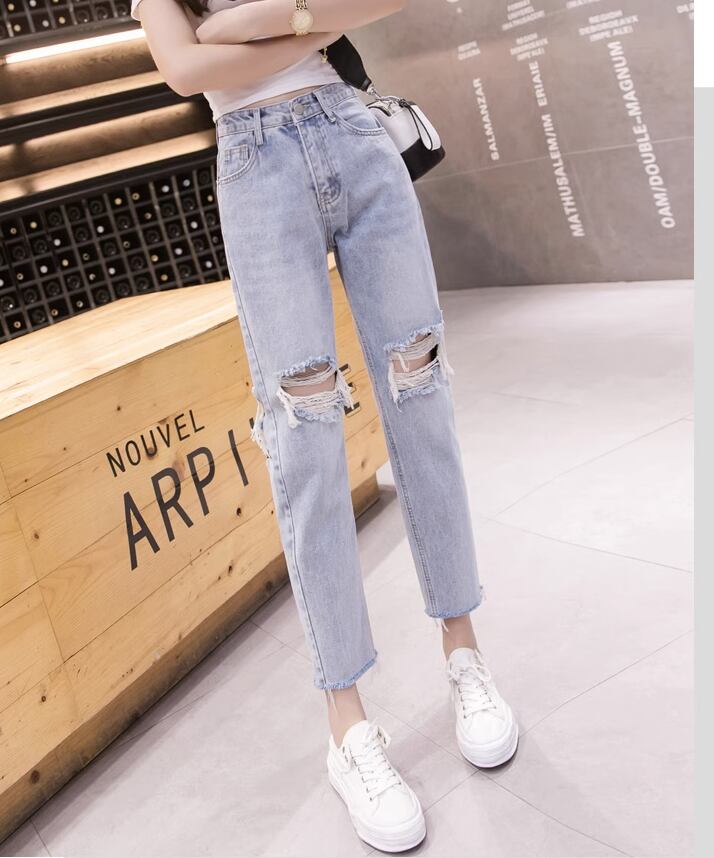 ボトムス ダメージジーンズ 穴あき ハイウエスト 9分丈 ルーズストレート ポケット ロールアップ ストレート デニム 薄手 かわいい 大人可愛い カジュアル おしゃれ かっこいい こなれ感 ラフ メンズライク マニッシュ ボーイッシュ スポーティー 個性的 クール 抜け感 無地 春 夏 10代 20代 レディース 女性用 デート お出かけ 休日 イベント 旅行 テーマパーク 着回し 普段使い スタイル 楽ちん 美脚 脚長 プレゼント ギフト 新作 定番 サイズ S M L XL ライトブルー