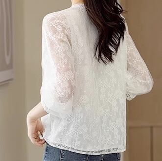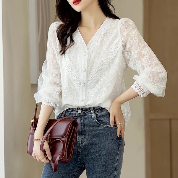 トップス シャツ ブラウス 袖あり 長袖 Vネック レース 刺繍 フリル 前開き 透け感 シースルー かわいい 大人可愛い きれいめ 上品 おしゃれ お洒落 キュート ガーリー エレガント モダン 抜け感 無地 春 夏 10代 20代 30代 40代 50代 60代 レディース 女性用 ママ デート お出かけ 女子会 休日 パーティー イベント 着回し 普段使い 重ね着 モテ インスタ映え サイズ S M L XL 2XL 小さいサイズ 大きいサイズ 色展開 白 ホワイト