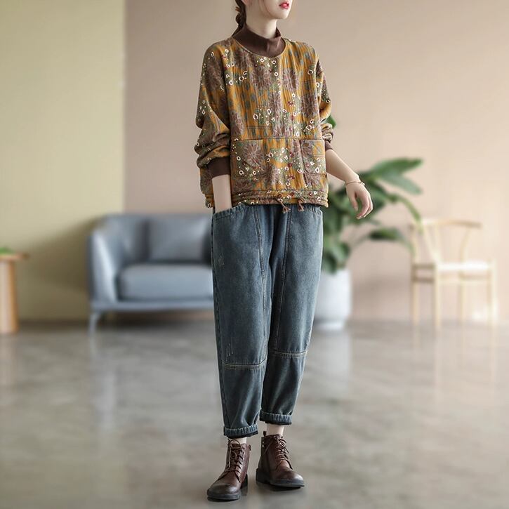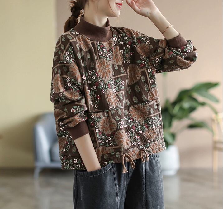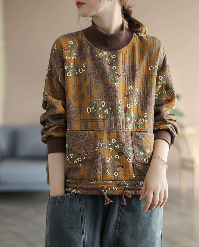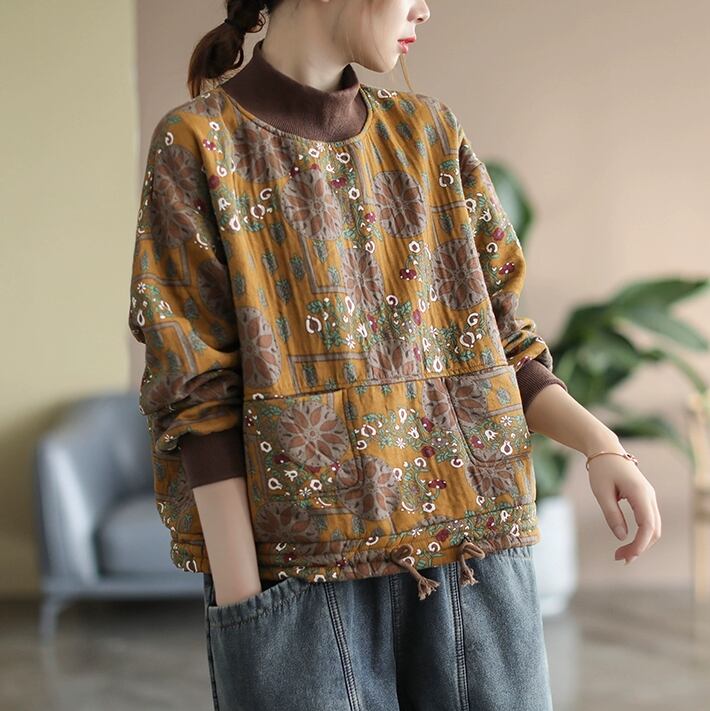トップス ブラウス プルオーバー レギュラー丈 袖あり 長袖 ハイネック ストレート 切り替えデザイン ポケット ドローコード かわいい 大人可愛い カジュアル おしゃれ かっこいい レトロ 大人可愛い キュート 存在感 柄 花柄 フラワー 春 秋 20代 30代 40代 レディース 女性用 男性用 男女兼用 ママ 学生 通学 デート お出かけ 女子会 休日 アウトドア イベント 旅行 ショッピング 着回し 普段使い ファッション コーデ サイズ ワンサイズ 色展開 イエロー レッド ブラウン