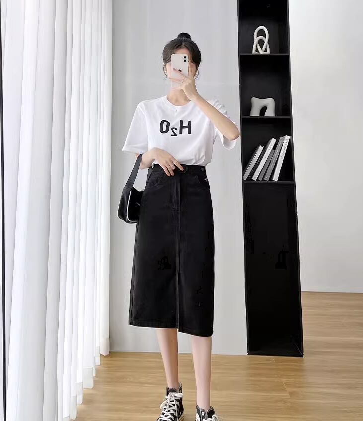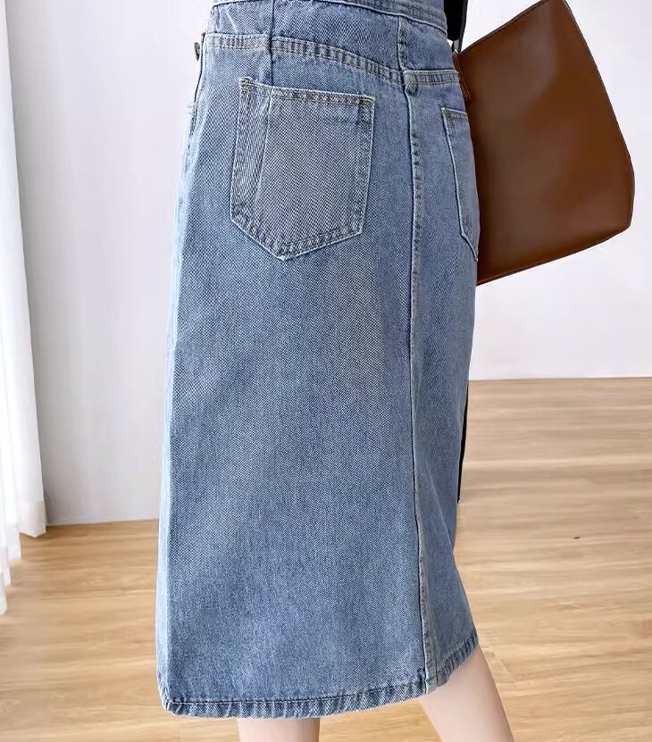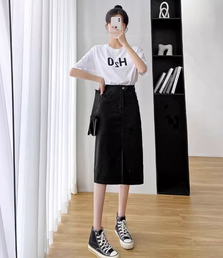 シンプルなTシャツや大人っぽいシャツなど、幅広いスタイルにマッチするデニムスカート。