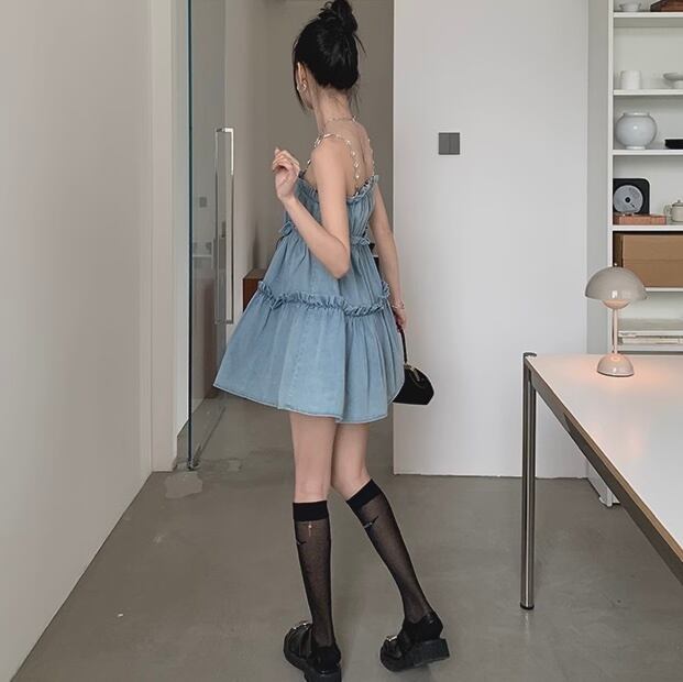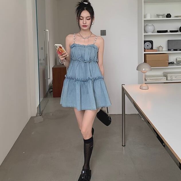 ワンピース フレアワンピース ティアードワンピース デニムワンピース ミニ ミニ丈 ショート ショート丈 袖なし ノースリーブ フレア Aライン フリル デニム ブルーデニム かわいい 大人可愛い 上品 おしゃれ お洒落 かっこいい レトロ ラブリー キュート ガーリー セクシー 抜け感 無地 春 夏 秋 10代 20代 30代 40代 レディース 女性用 お出かけ 女子会 休日 パーティー イベント モテ トレンド 流行 インスタ映え サイズ フリーサイズ ワンサイズ 色展開 青 ブルー