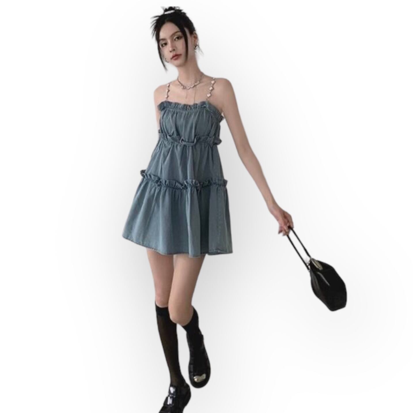 ティアードデザインとブルーデニムが絶妙に融合した、おしゃれでキュートなアイテムです。