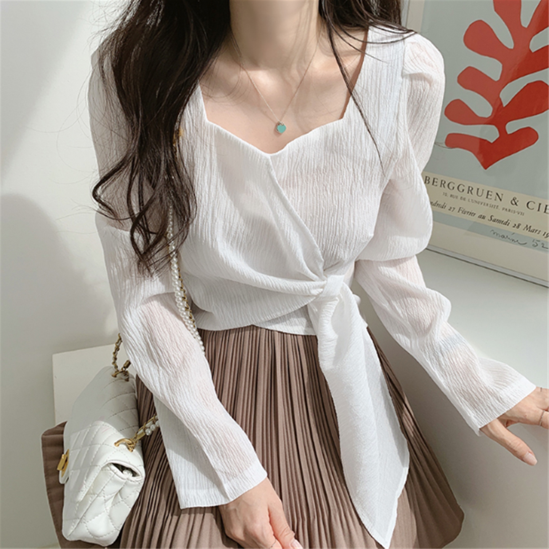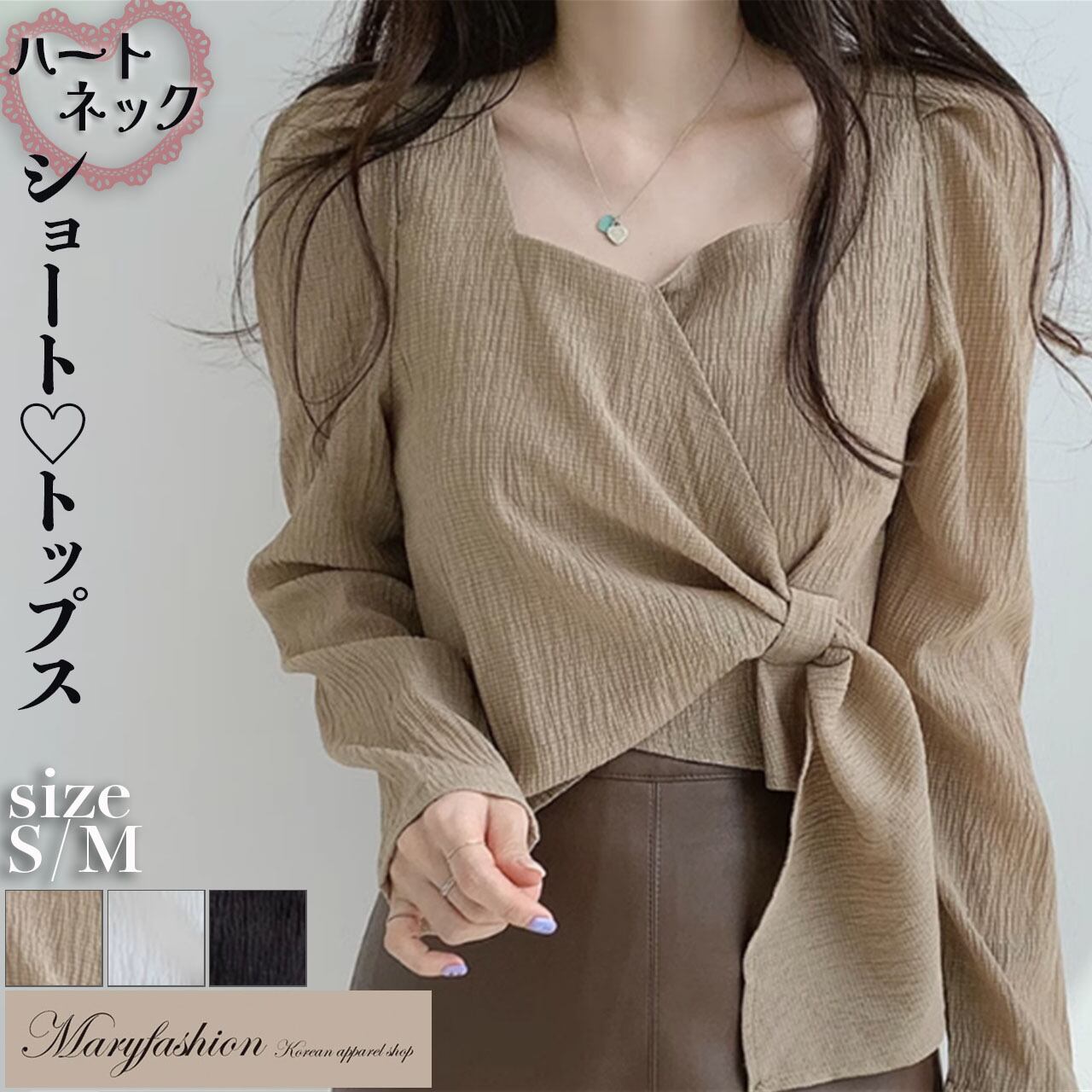 トップス シャツ ブラウス 袖あり スクエアネック ハートネック 襟なし リボン 透け感 ショート丈 大人可愛い きれいめ シック レトロ シンプル カジュアル 大人 上品 おしゃれ 大人女子 こなれ感 ガーリー エレガント 主役級 存在感 無地 春 夏 秋 10代 20代 30代 レディース ママ 学生 通学 デート お出かけ 女子会 休日 イベント レストラン ショッピング 着回し 普段使い お揃い 韓国 オルチャン コーデ モテ 定番 モテ インスタ映え S M ベージュ ホワイト ブラック