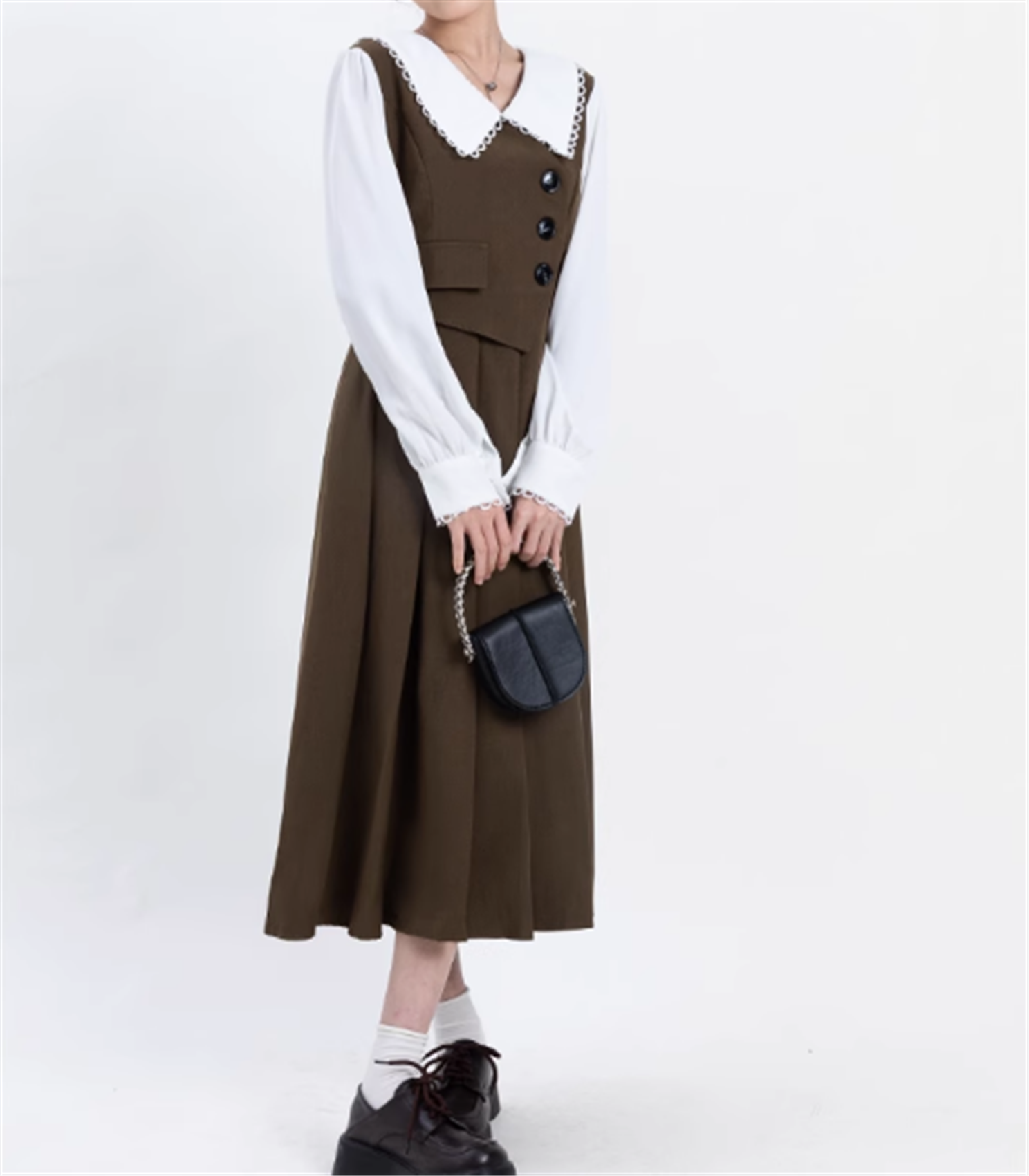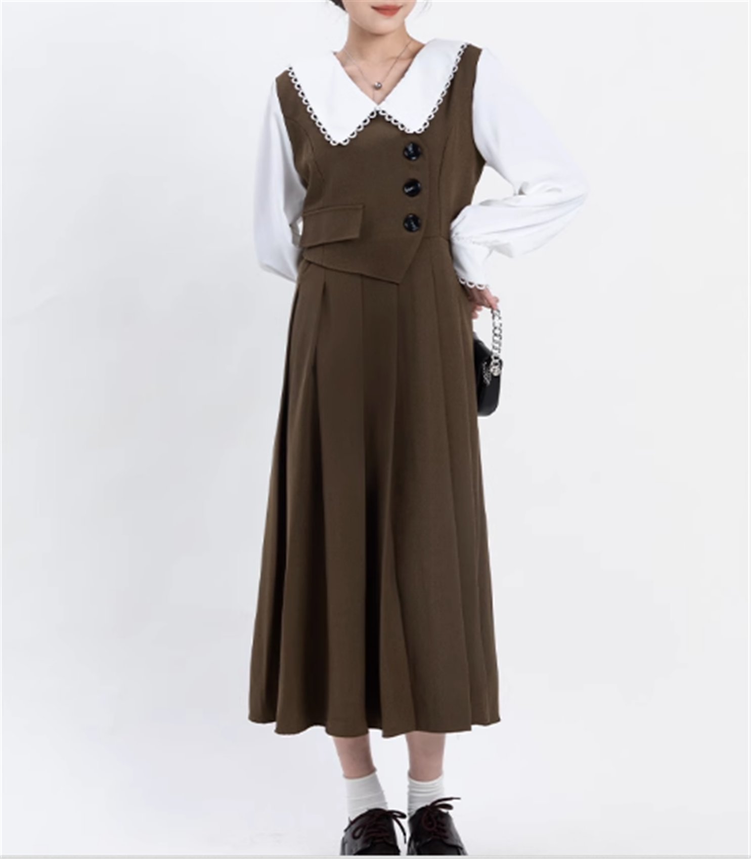 レトロな雰囲気のミモレ丈ワンピースです。