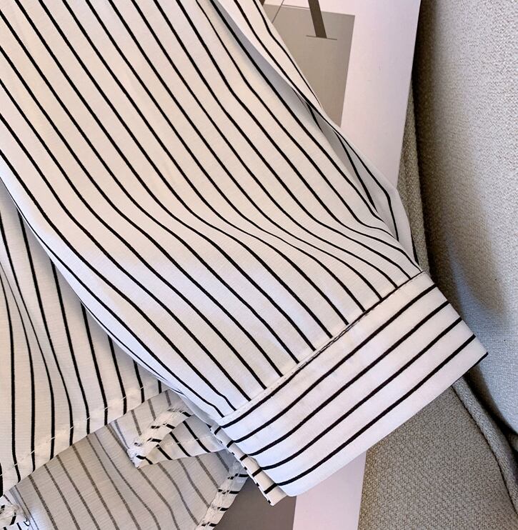 トップス Yシャツ ストライプ ポロカラー セットアップ風 長袖 シングルブレスト ボタン ルーズフィット サマ見え こなれ感 大人かわいい ゆったり シンプル 細見え おしゃれ 細見え カジュアル サマ見え こなれ感 モテコーデ 通勤 通学 学生 OL ルーズ 体型カバー レディース お出かけ 休日 人気 好印象 お買い物 便利 使いやすい 韓国 M L XL 2XL ブルー ブラック
