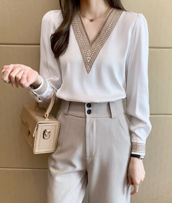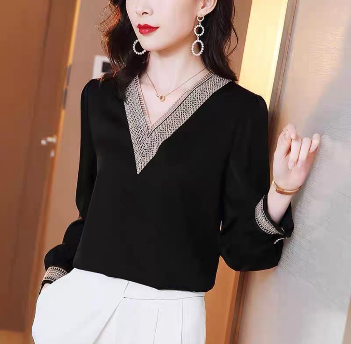 上品さとお洒落さを兼ね備えた長袖ブラウス。