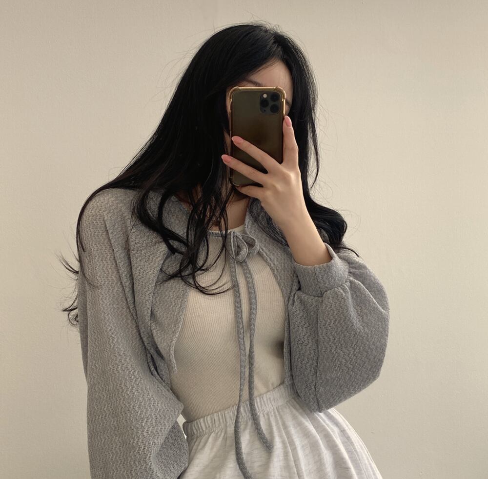 ボリュームのある袖が大人可愛いボレロカーディガン。