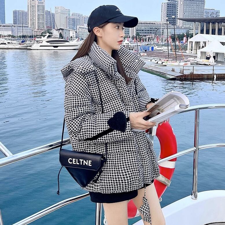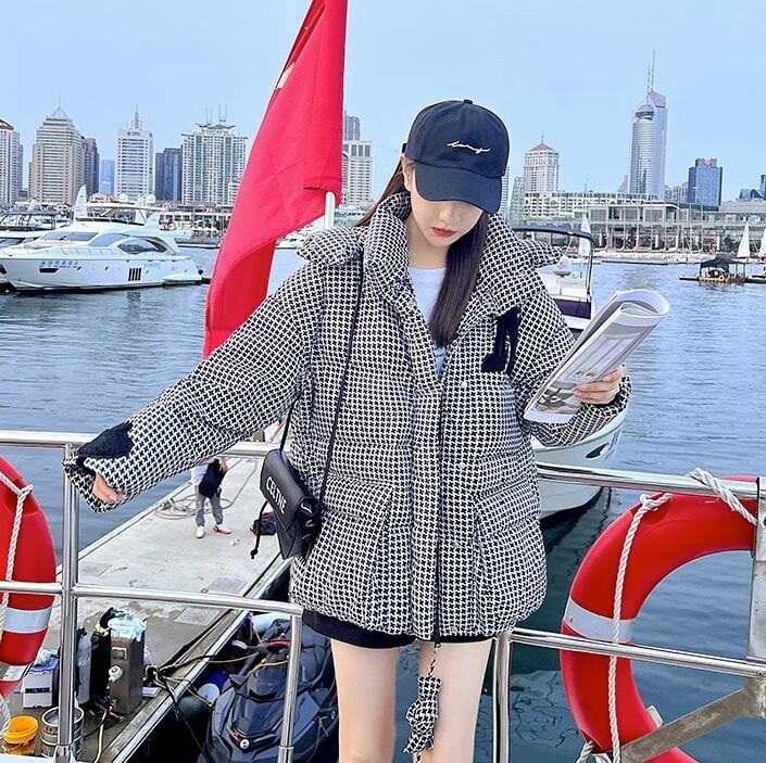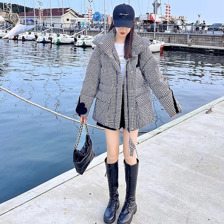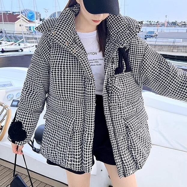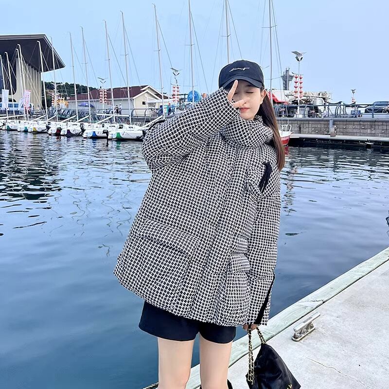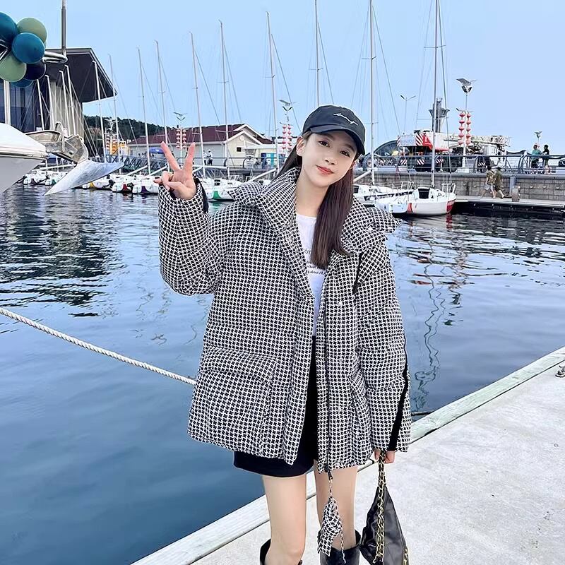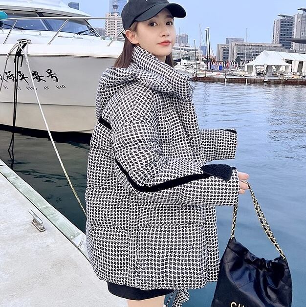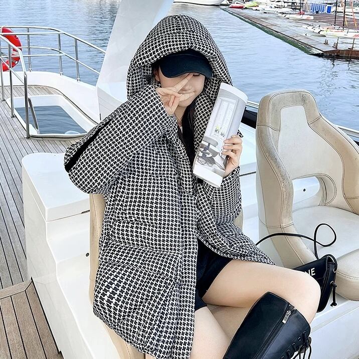 アウター ダウンコート ミディアム丈 ミドル丈 長袖 Vネック スタンドカラー もこもこ モコモコ ふわふわ フード付き 前開き ダウン かわいい 大人可愛い きれいめ 上品 おしゃれ お洒落 レトロ ラブリー キュート ガーリー 存在感 チェック柄 格子柄 プリント 冬 10代 20代 30代 40代 50代 60代 レディース 女性用 通勤 お出かけ 休日 重ね着 暖かい 防寒 体系カバー 美脚 脚長 トレンド 流行 インスタ映え サイズ M L XL 大きいサイズ 色展開 黒 ブラック