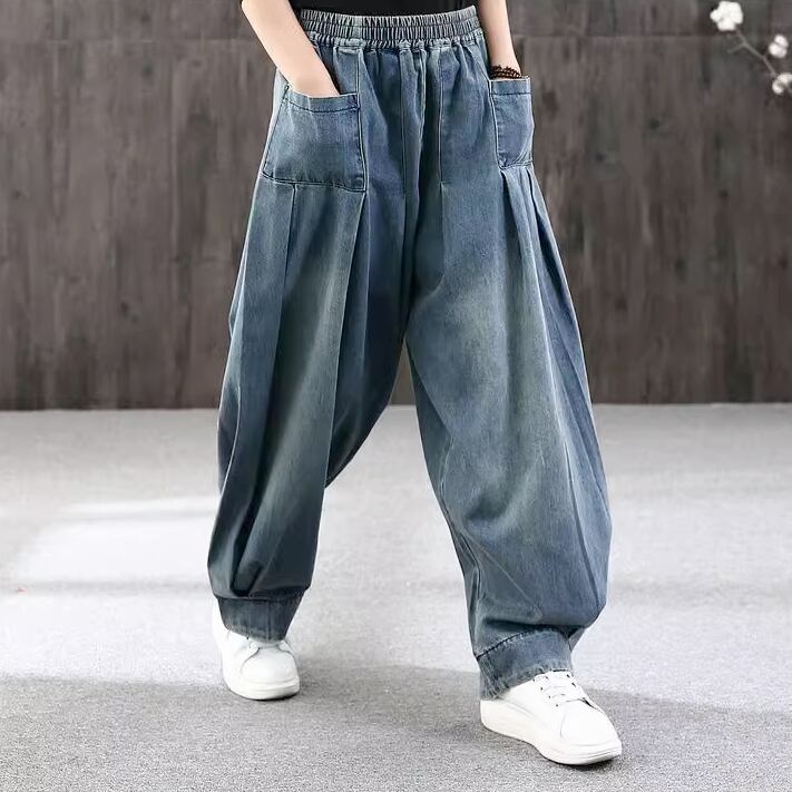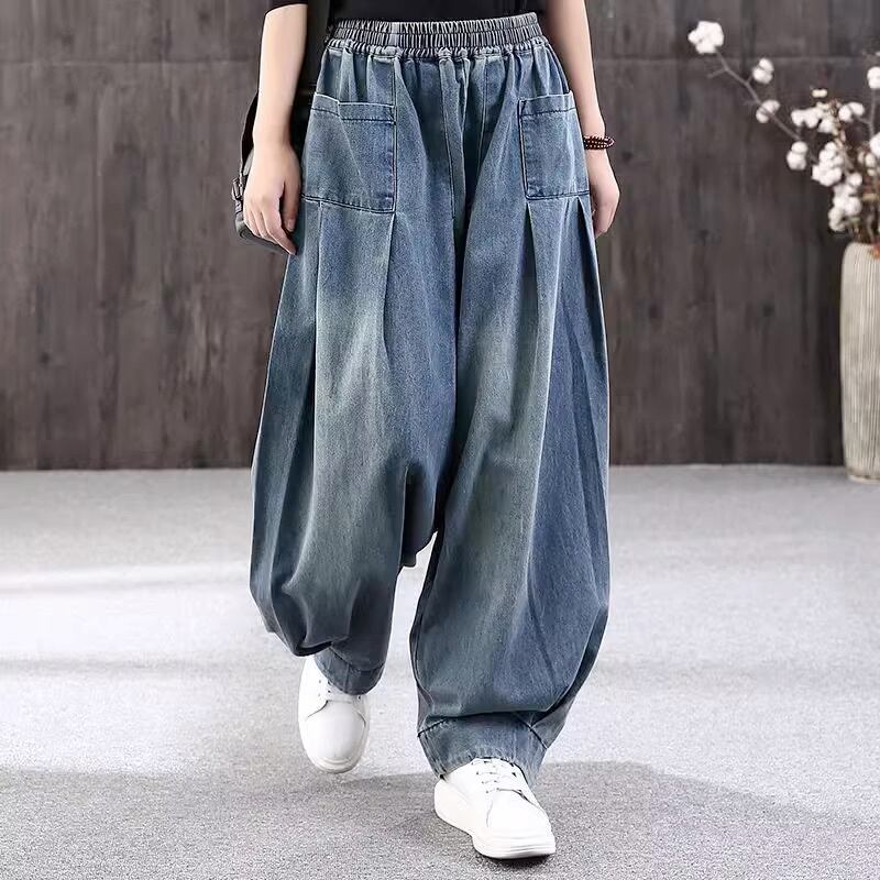 ボトムス パンツ ワイドパンツ デニムパンツ ロング ロング丈 ポケット ハイウエスト ウエストゴム デニム ブルーデニム かわいい 大人可愛い カジュアル レトロ こなれ感 ラフ ルーズ 無地 春 夏 秋 冬 オールシーズン シーズンレス 10代 20代 30代 40代 50代 60代 レディース お出かけ 休日 アウトドア 着回し 普段使い 体系カバー トレンド 流行 インスタ映え サイズ M L XL 2XL 3XL 小さいサイズ 大きいサイズ 大きい 大きめ ゆったり ゆる 色展開 青 ブルー