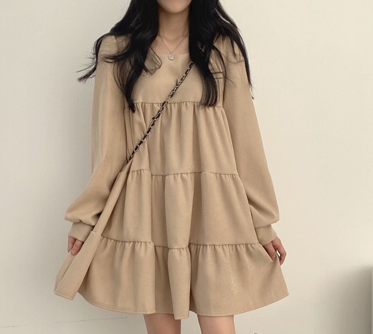 トップス ワンピース ゆったり 長袖 ミディアム丈 襟なし スクエアネック シャーリング 切替 Aライン パフスリーブ 膝上丈 プルオーバー フレアワンピース ワンピドレス 袖あり 切り替えデザイン 伸縮性 かわいい 大人可愛い きれいめ シンプル カジュアル おしゃれ レトロ エキゾチック 大人可愛い こなれ感 無地 秋 冬 学生 通学 デート お出かけ 女子会 休日 パーティー イベント 旅行 着回し 普段使い 暖かい 美脚 脚長 サイズ フリーサイズ 色展開 オフホワイト ブラック ブラウン