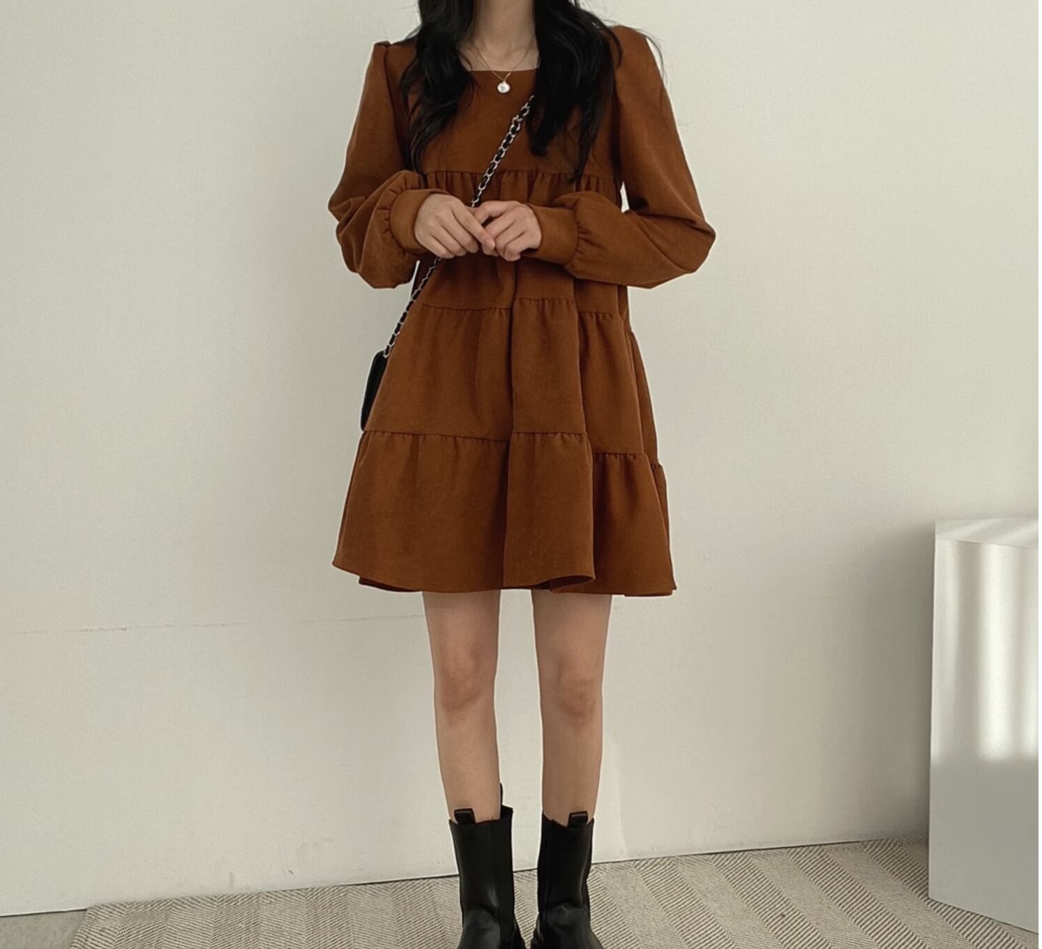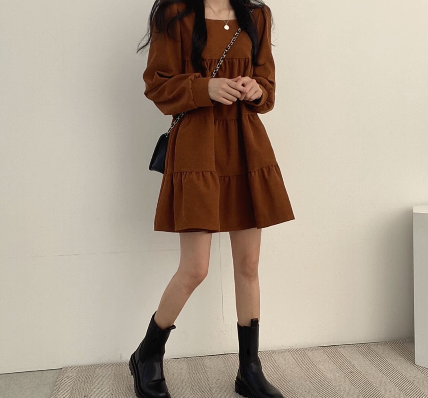 フェミニンな雰囲気が漂うトップス ワンピースのご紹介です。ゆったりとしたシルエットとミディアム丈が、女性らしい可愛らしさを引き立てます。スクエアネックのデザインにシャーリングと切替が施され、エレガントさもアップ。パフスリーブとAラインのシルエットが、綺麗なプロポーションを演出します。膝上丈なので、足元もスッキリと見えますよ。デートや女子会、イベントなど華やかなシーンにぴったり。オフホワイト、ブラック、ブラウンの3色展開で、お好みに合わせてお選びいただけます。フリーサイズなので、幅広いサイズに対応しています。秋冬の暖かいアイテムとして、普段使いから特別な日まで幅広く活躍してくれます。一枚でコーディネートが完成する、おしゃれでかわいい一着をぜひお楽しみください。