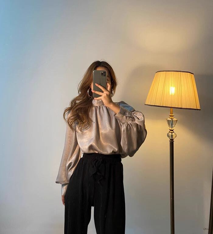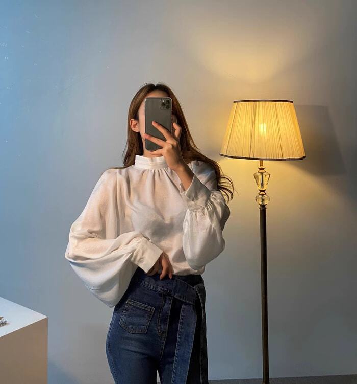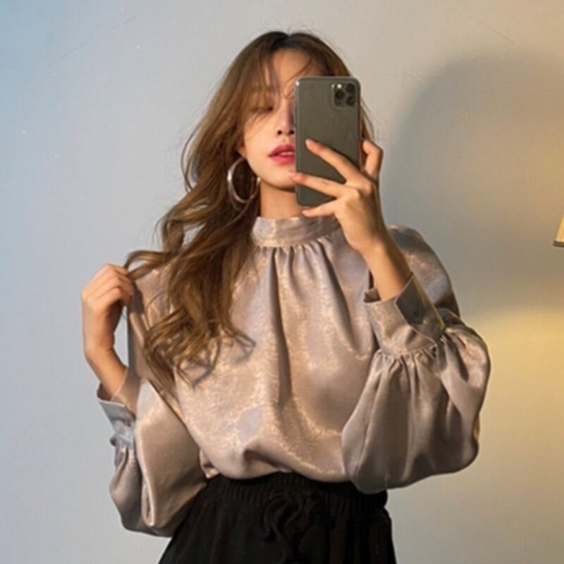 トップス ブラウス シアートップス シアーブラウス 袖あり 長袖 ボリューム袖 ロングスリーブ ランタンスリーブ ふんわり袖 ハイネック スタンドカラー 光沢 透け感 シースルー 大人 上品 おしゃれ お洒落 エレガント モダン フレンチ 主役級 存在感 無地 春 秋 20代 30代 レディース 女性用 デート お出かけ 女子会 パーティー イベント 着回し 重ね着 韓国 韓国系 オルチャン ファッション コーデ スタイル モテ サイズ フリーサイズ 色展開 白 ホワイト 黒 ブラック 茶色 ブラウン