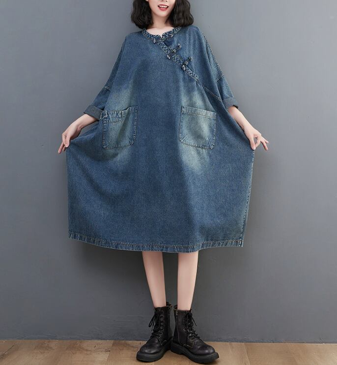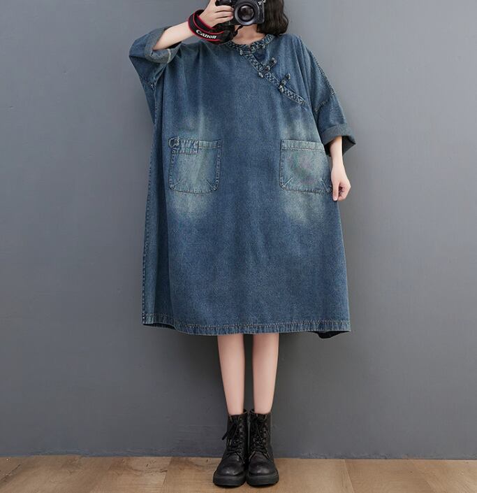 ワンピース デニムワンピース 膝丈 ひざ丈 袖あり 長袖 ラウンドネック 襟なし ポケット お得 かわいい 大人可愛い カジュアル おしゃれ お洒落 アジアン エスニック ルーズ 個性的 存在感 ナチュラル 無地 春 秋 ロングシーズン 20代 30代 40代 レディース 女性用 デート お出かけ 女子会 お茶会 ランチ ショッピング 休日 着回し 普段使い 重ね着 楽ちん 体系カバー プチプラ M L XL 2XL 小さいサイズ 大きいサイズ ゆったり ゆる ビッグシルエット オーバーサイズ