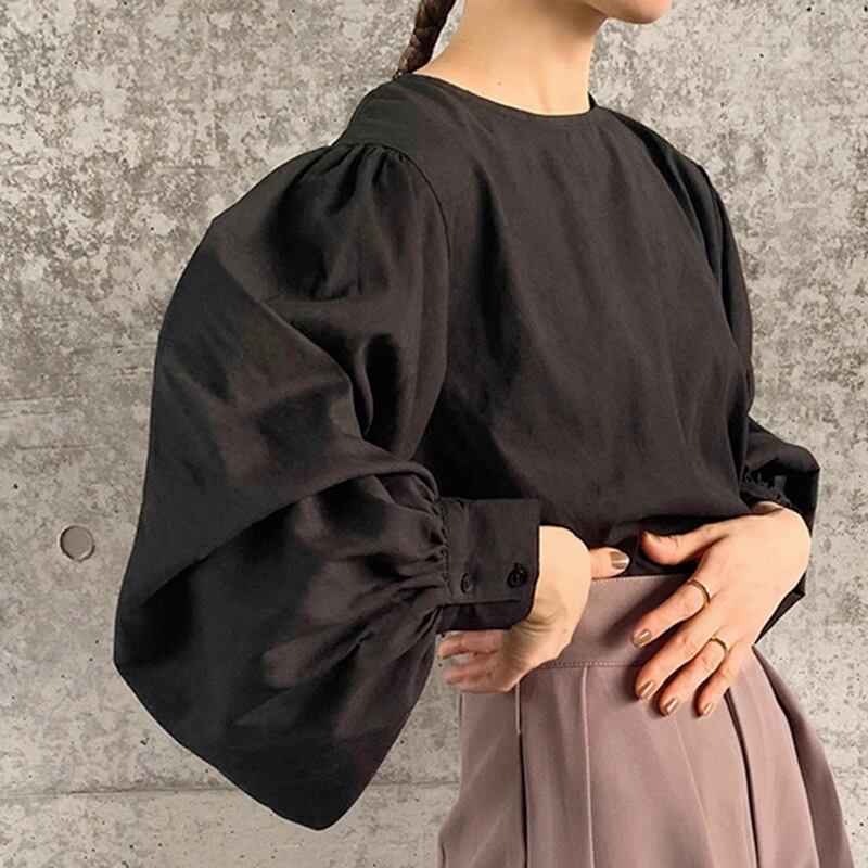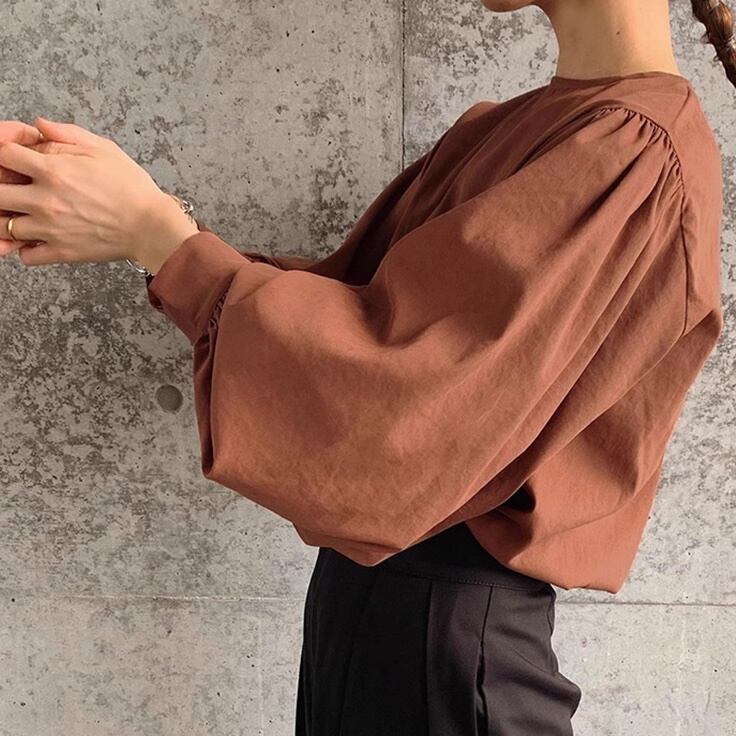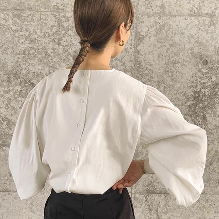 ボリュームのある袖が可愛らしさとこなれ感を演出し、Uネックで女性らしさも引き立ちます。
