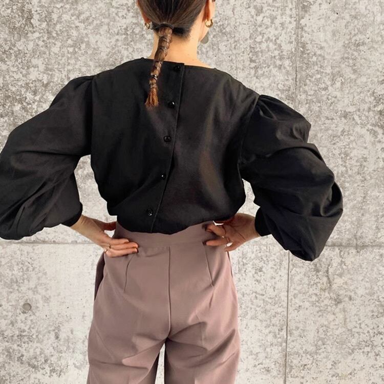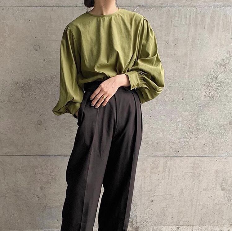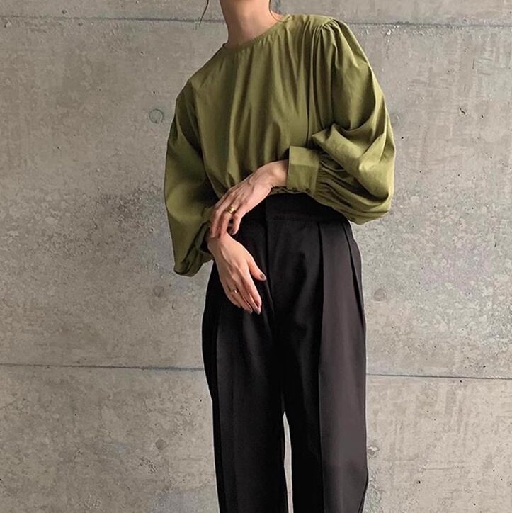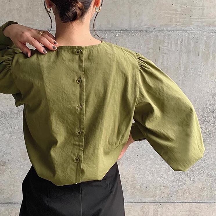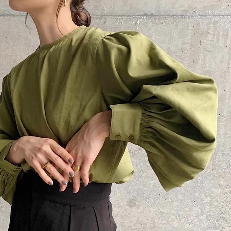 トップス シャツ ブラウス 袖あり 長袖 ボリューム袖 Uネック かわいい 大人可愛い きれいめ シンプル おしゃれ お洒落 かっこいい こなれ感 メンズライク マニッシュ ラブリー キュート ガーリー 個性的 クール モード系 無地 春 秋 10代 20代 30代 40代 50代 60代 お出かけ 休日 旅行 ガーデン ショッピング 着回し 普段使い 重ね着 モテ 定番 トレンド 流行 インスタ映え サイズ M L 色展開 白 ホワイト 黒 ブラック 緑 グリーン 茶色 ブラウン