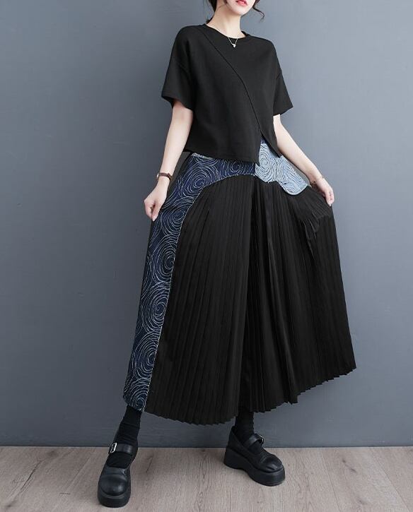 ボトムス パンツ ズボン ワイドパンツ ガウチョパンツ 和風柄 古風 ストレートパンツ プリーツ ハイウエスト 九分丈 ポケット バックゴム イージーパンツ シンプル 変形デザイン 個性的 かっこいい クール モード シンプル カジュアル 大人カジュアル お洒落 大人 こなれ感 マニッシュ ゆったり 抜け感 無地 春 夏 秋 20代 30代 40代 ママ 学生 通学 デート お出かけ 女子会 休日 旅行 普段使い 楽ちん 体型カバー 脚長効果 定番 インスタ映え トレンド 流行 華奢見え ブラック