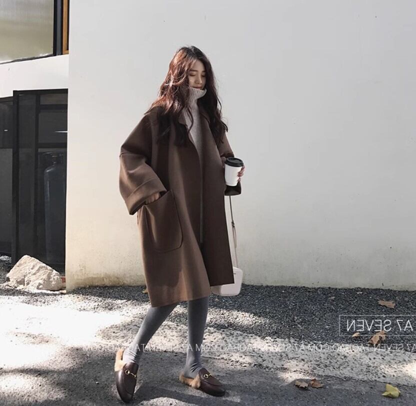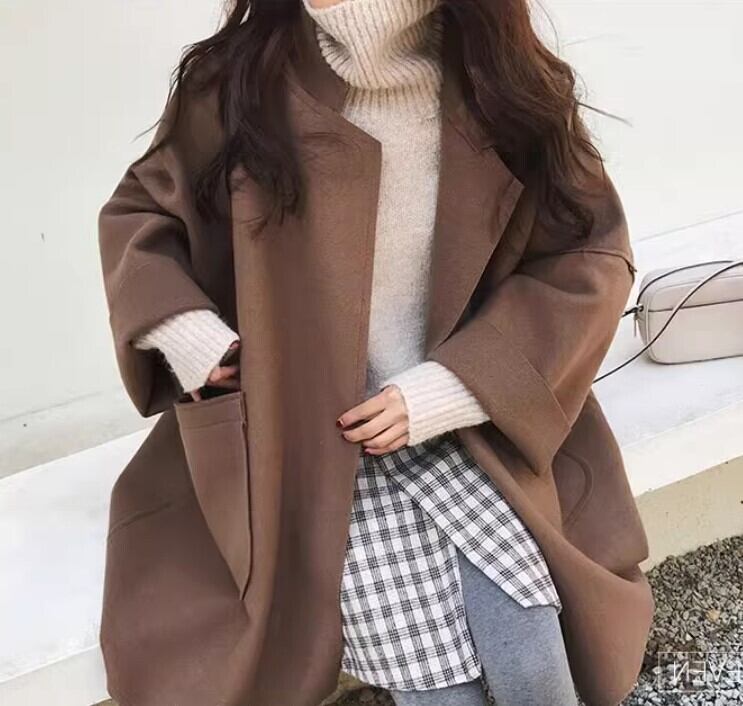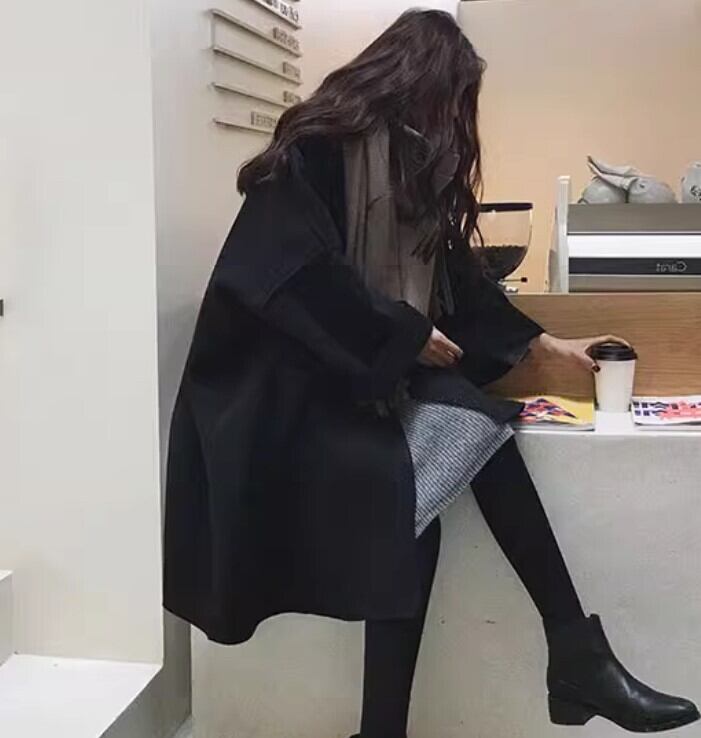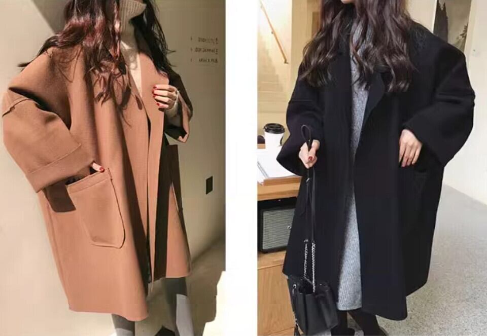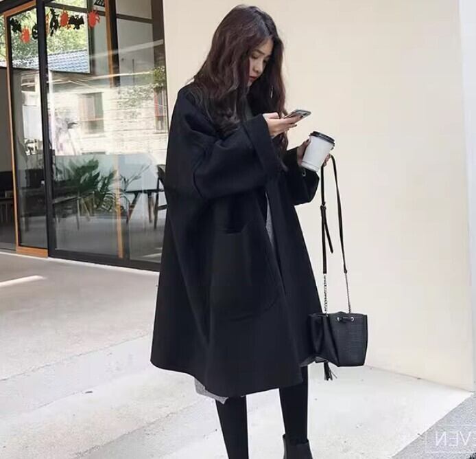 レディース コート アウター 上着 羽織 ミディアム 長袖 ワイド 前開き かわいい シンプル カジュアル おしゃれ ラフ ルーズ 無地 秋 冬 通勤 通学 デート お出かけ 暖かい 防寒 定番 ブラック ブラウン