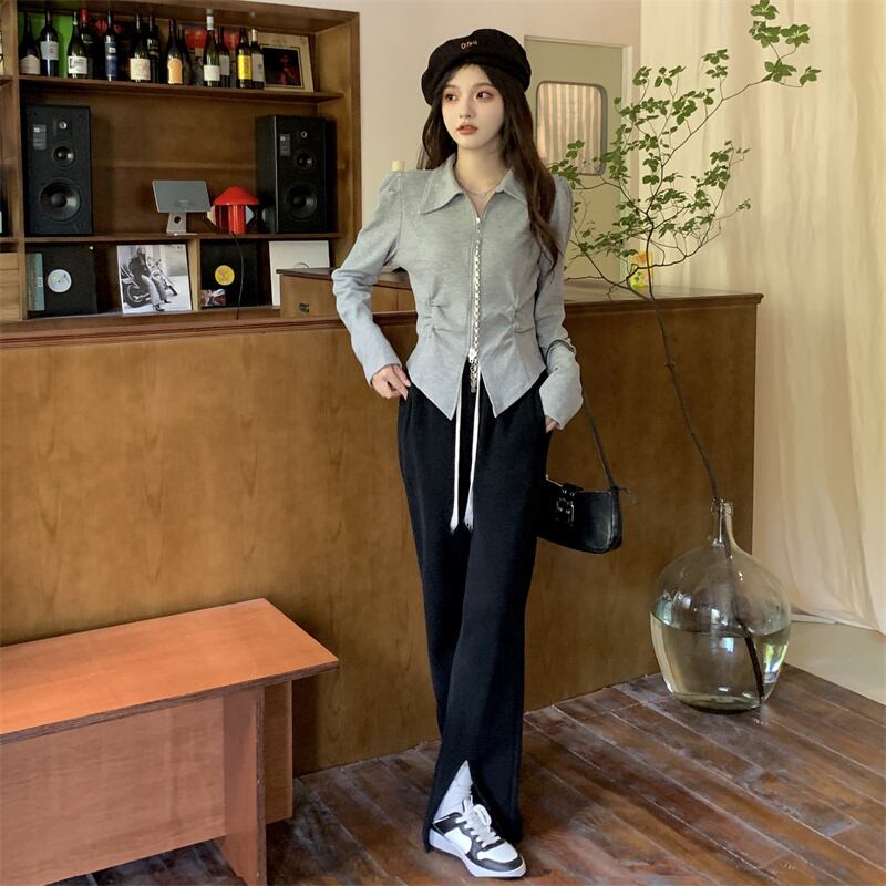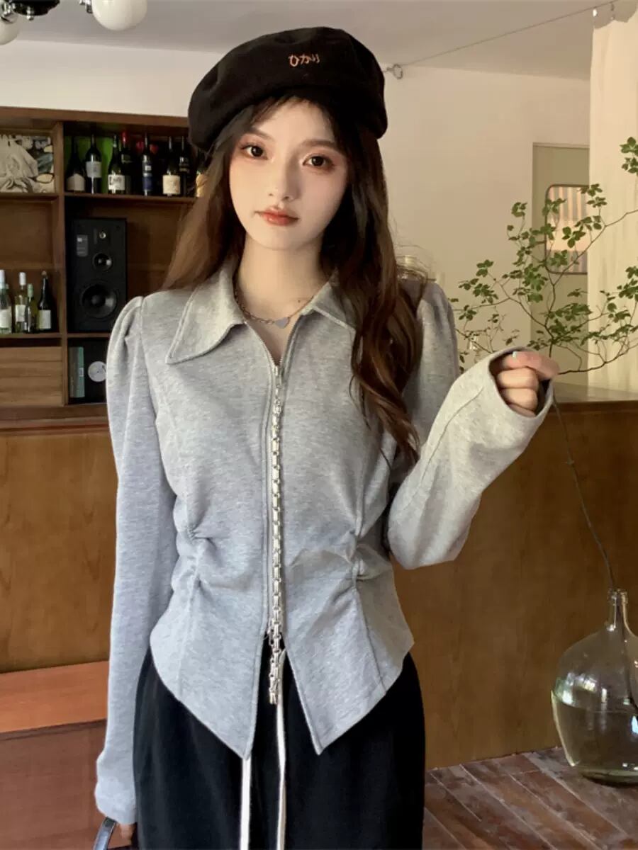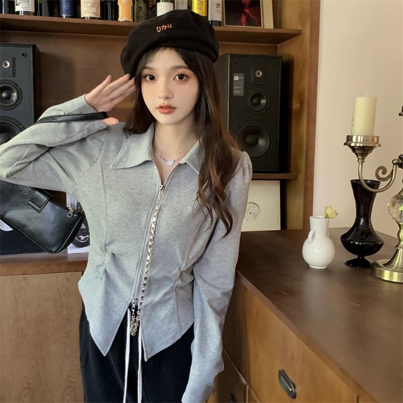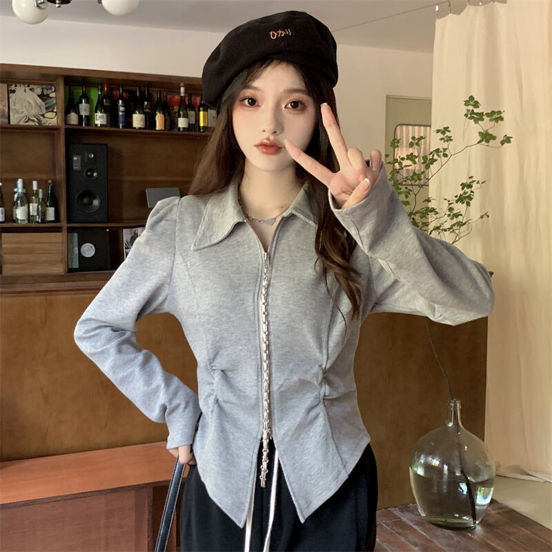 トップス シャツ レギュラー丈 長袖 ポロカラー プリーツ ファスナー 大人可愛い 大人 おしゃれ お洒落 かっこいい ラフ クール セクシー 無地 秋 10代 20代 レディース 通勤 デート お出かけ 女子会 お泊まり 休日 アウトドア パーティー イベント 旅行 ショッピング 普段使い お揃い 韓国 ファッション コーデ スタイル 楽ちん モテ 体形カバー プレゼント ギフト インスタ映え L XL 2XL 3XL 4XL 大きいサイズ ブラック グレー