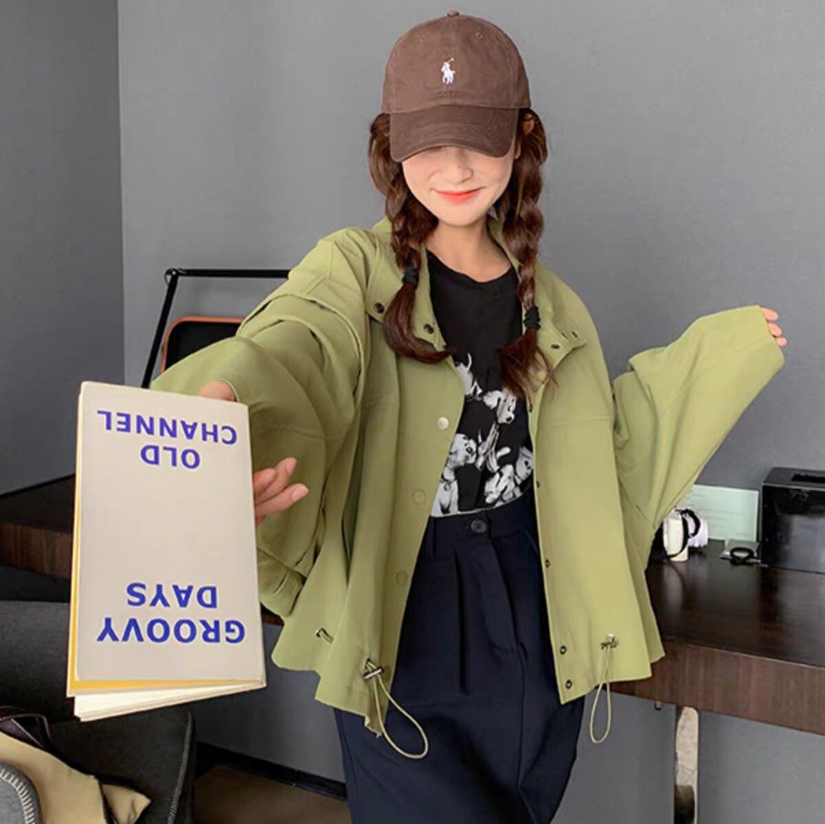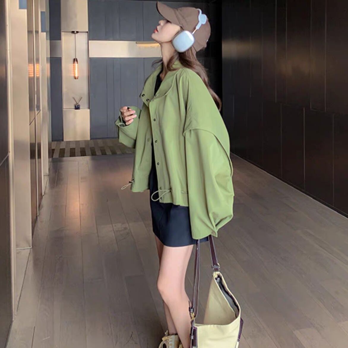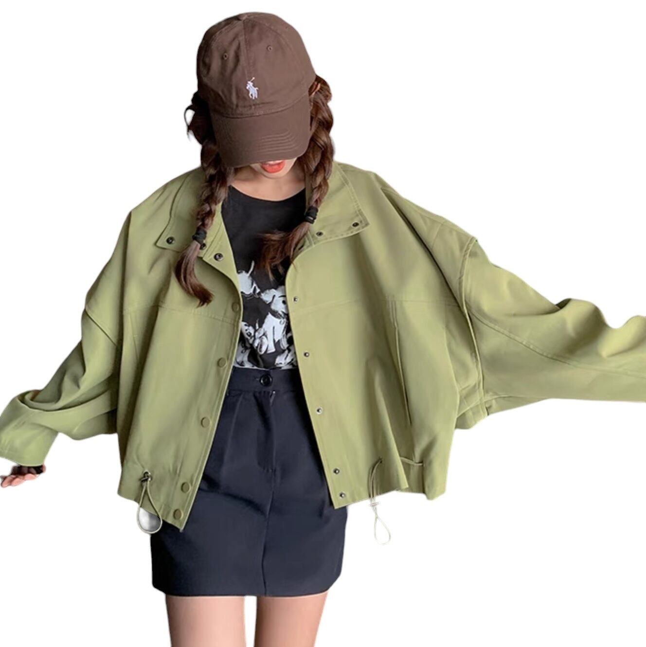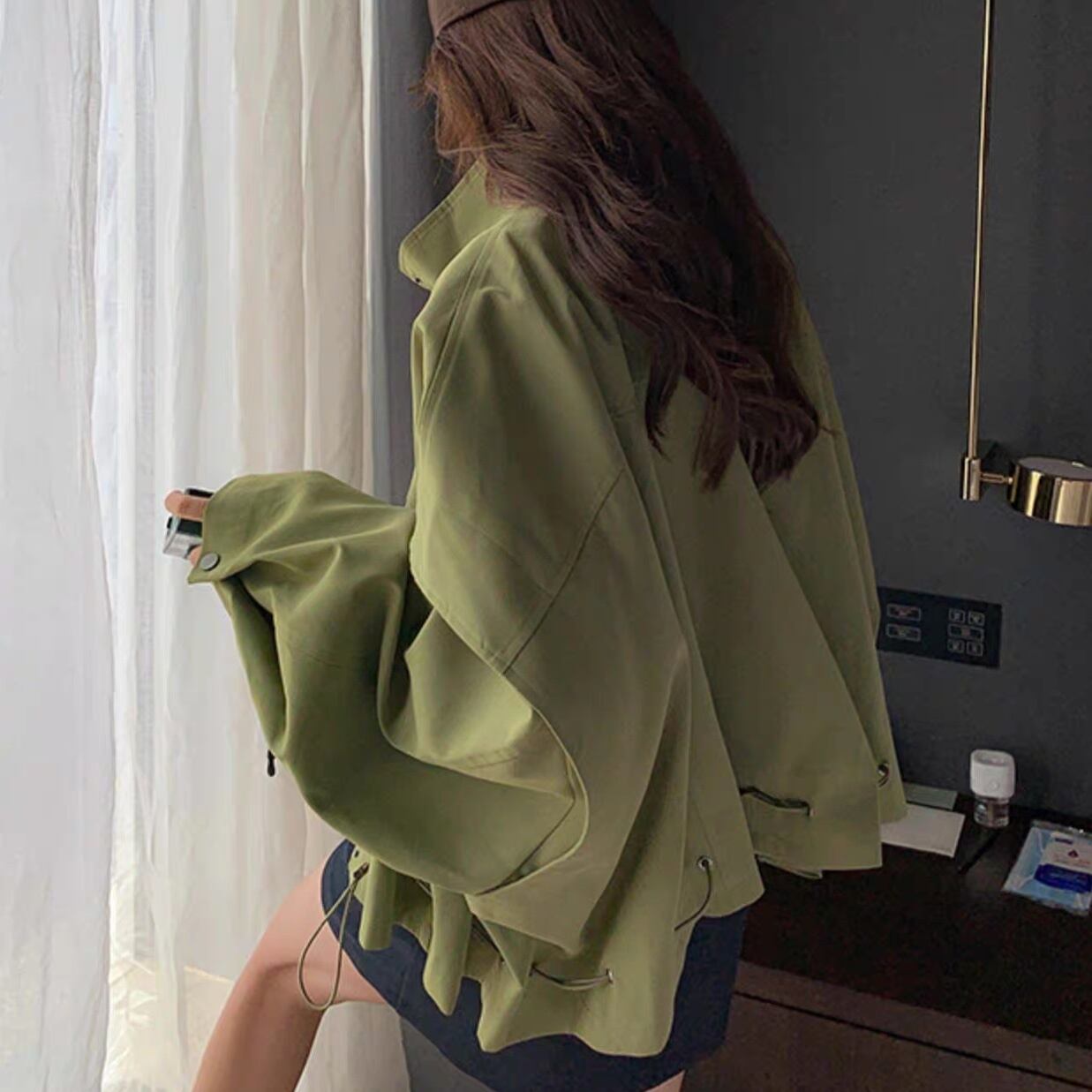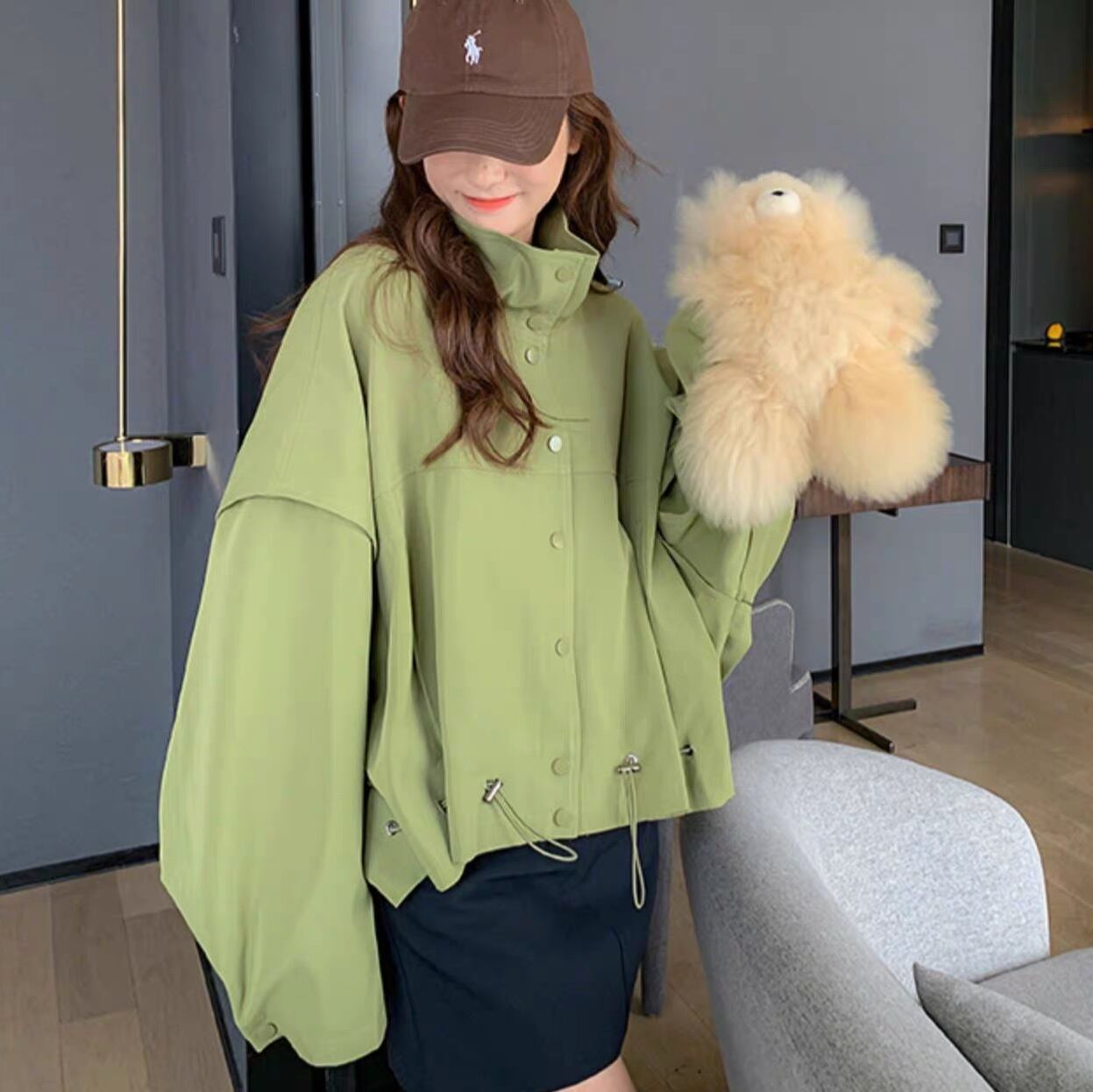 アウター ブルゾン ジャケット シャンパー 上着 ショート ショート丈 長袖 Vネック 襟付き 前開き かわいい 大人可愛い きれいめ シンプル カジュアル おしゃれ かっこいい ラフ ラブリー キュート ガーリー ルーズ 抜け感 無地 春 秋 10代 20代 30代 40代 50代 60代 レディース 女性用 お出かけ 休日 旅行 ショッピング 着回し 普段使い 重ね着 楽ちん 防寒 定番 トレンド 流行 インスタ映え サイズ S M L 小さいサイズ 大きいサイズ 色展開 緑 グリーン