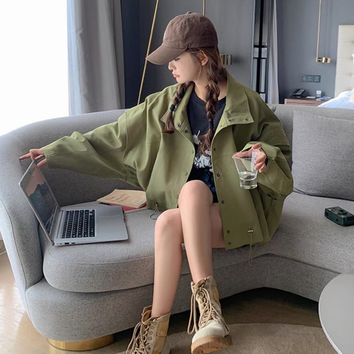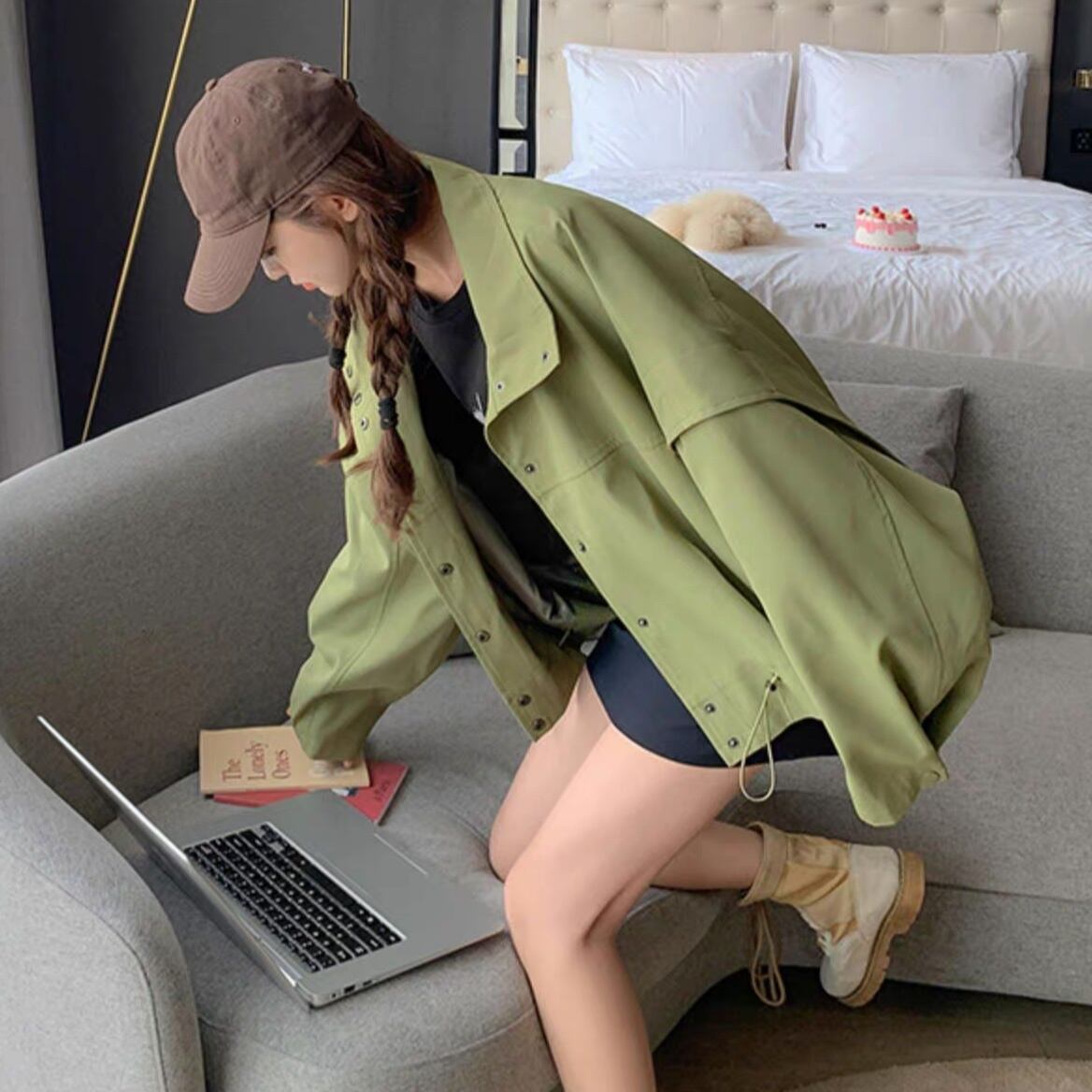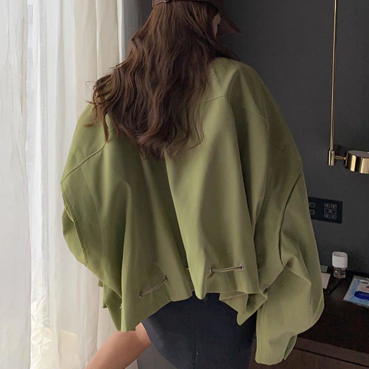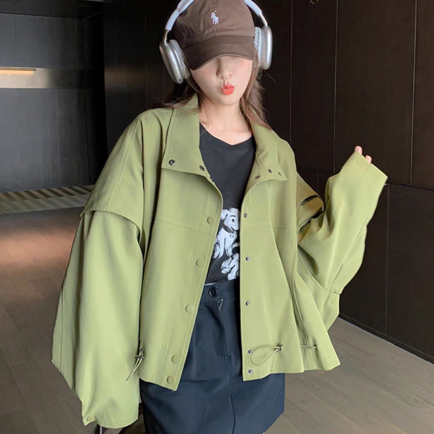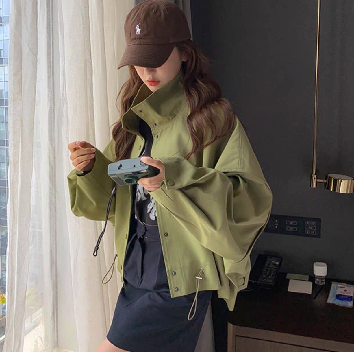 アウター ブルゾン ジャケット シャンパー 上着 ショート ショート丈 長袖 Vネック 襟付き 前開き かわいい 大人可愛い きれいめ シンプル カジュアル おしゃれ かっこいい ラフ ラブリー キュート ガーリー ルーズ 抜け感 無地 春 秋 10代 20代 30代 40代 50代 60代 レディース 女性用 お出かけ 休日 旅行 ショッピング 着回し 普段使い 重ね着 楽ちん 防寒 定番 トレンド 流行 インスタ映え サイズ S M L 小さいサイズ 大きいサイズ 色展開 緑 グリーン